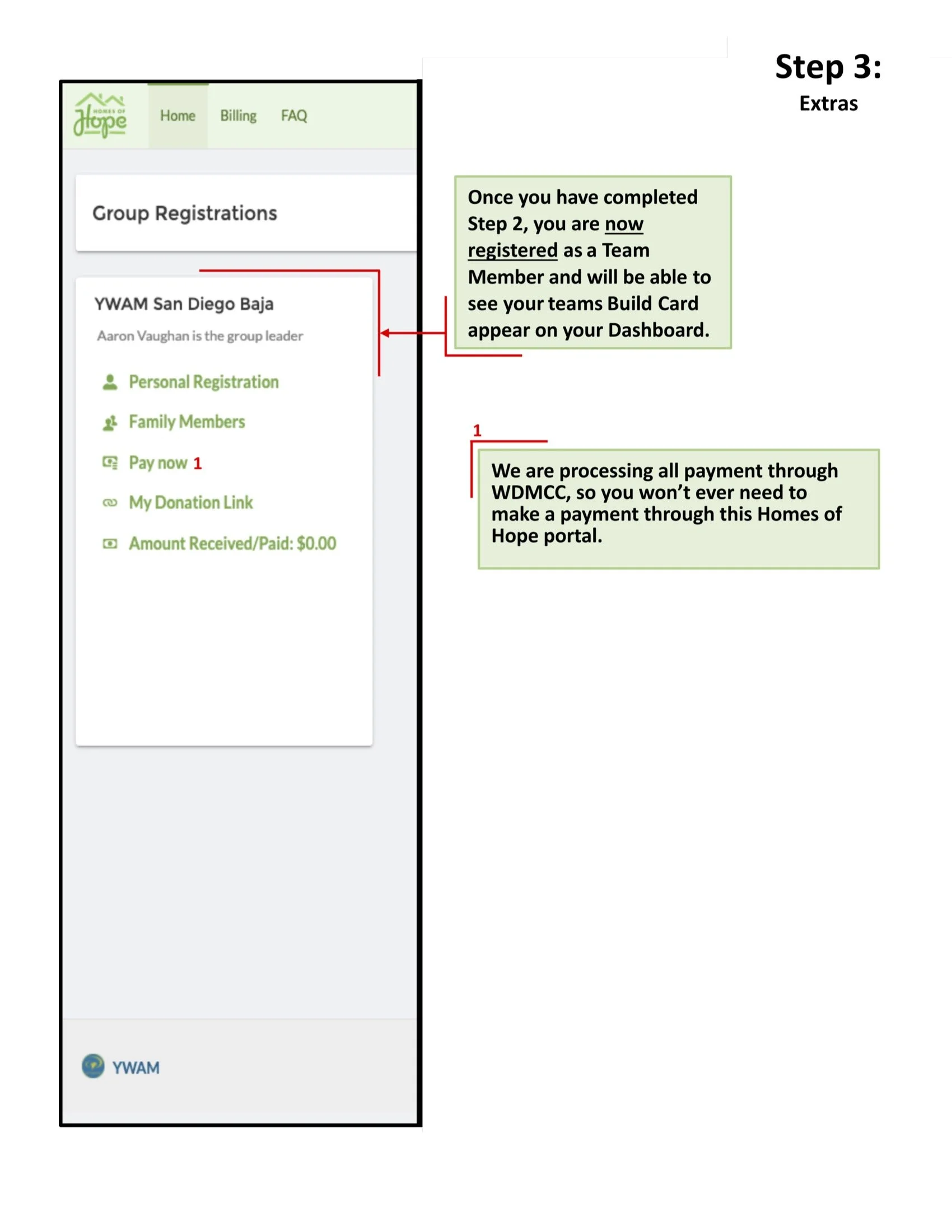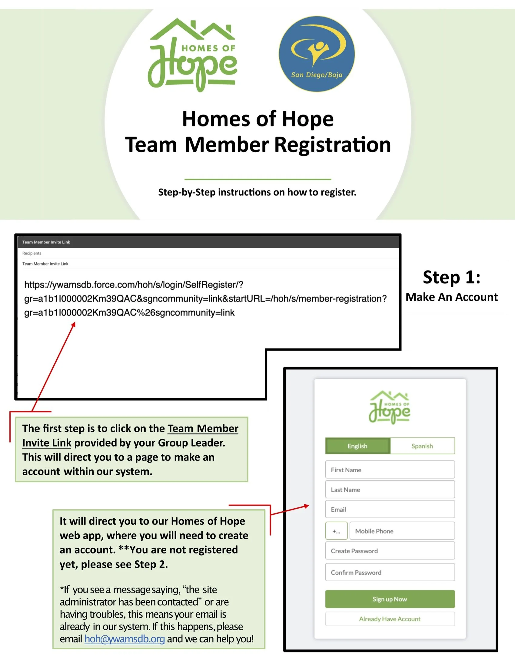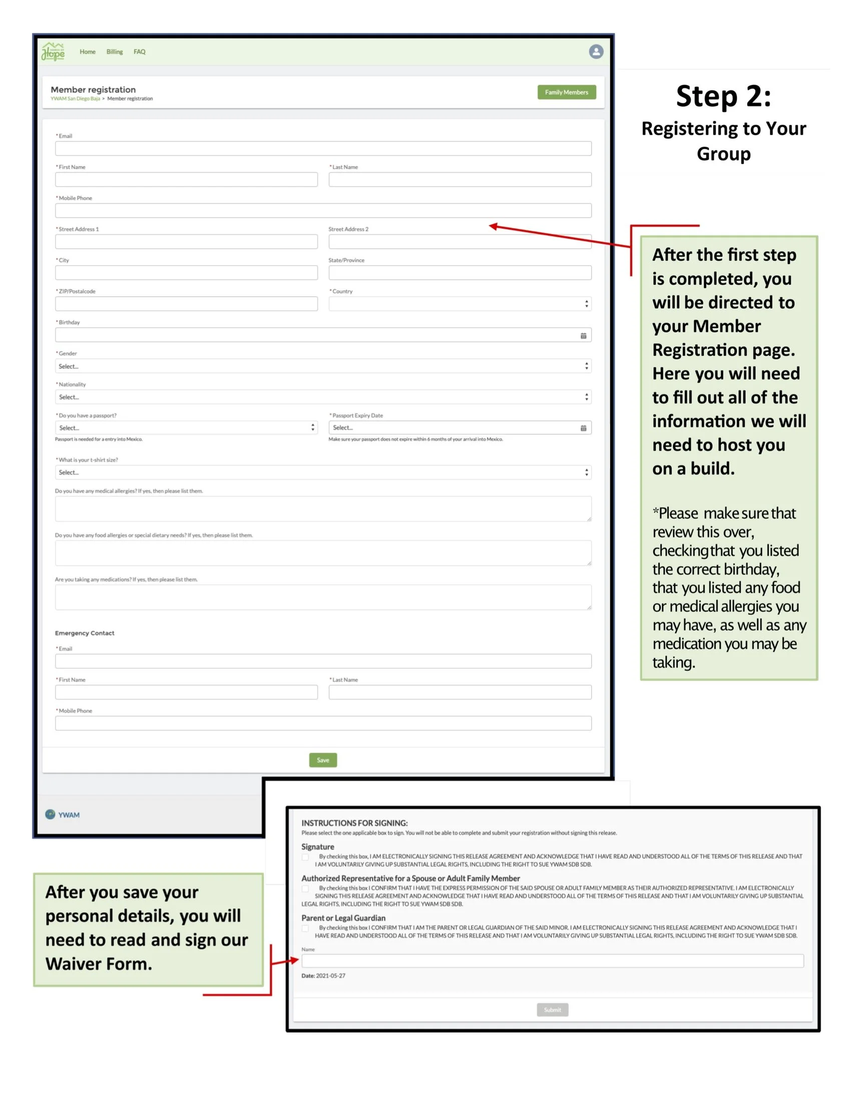 Make a profile on the YWAM portal and register with our team. To make a profile on the YWAM portal and register with our team, navigate to https://ywamsdb.my.site.com/hoh/s/login?gr=a1bVN000001pkMp and complete the fields. Below you will find screenshots that will walk you through the process. (*NOTE FOR FAMILIES/COUPLES: I believe it is the case that once one person in your family has created a profile, that person will then be able to add the rest of the family via the platform's backstage. The last page of the attached walkthrough document outlines this process). Once you've created your profile, you'll be able to see our "Group Build Card." You don't need to worry about any of the fields on that card right now. Having the profile is enough.