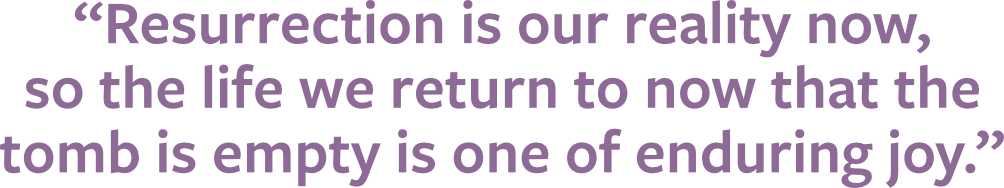 The “return to life” after moments of joy can feel like a reality check – even the Monday after Easter. But resurrection IS our reality now and always will be, so the life we return to now that the tomb is empty is one of enduring joy, even on the hard days.