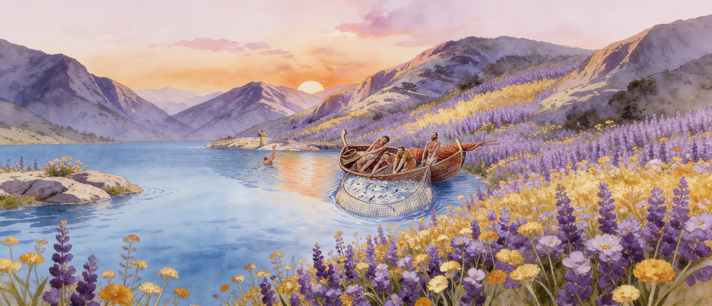 When Jesus called his first followers, they were out in a boat on the Sea of Galilee fishing (Matthew 4:18-22). With a huge assist from Jesus, Peter, James, and John pulled in a miraculous catch, which inaugurated their great adventure with Jesus, traveling throughout Galilee fishing for people. Fast-forward three years. The disciples have experienced many more miraculous things as followers of Jesus: they’ve witnessed healings, they’ve listened to his teachings, they’ve grieved his death and they’ve witnessed his resurrection. And now Peter, Thomas, Nathanael, the sons of Zebedee, and two other disciples are together, and Peter says to the group, “I’m going out to fish,” and they all say, “We’ll go with you” (John 21:1-3). So they go out and get in the boat. They row out into the very same water they had fished years ago before the great adventure began. They cast their nets, but they catch nothing. Meanwhile the resurrected Jesus is standing on the shoreline. He shouts, “Friends, haven’t you caught any fish?! Throw your net on the other side of the boat and you will find some.” They didn’t yet know it was Jesus, but they do what he says and they catch so many fish they can’t pull the net in. The disciples are amazed. Peter is so excited he doesn’t even wait for the boat to reach shore. He jumps in the water and swims to embrace Jesus. According to John, “None of the disciples dared ask him, ‘Who are you?’ They knew it was the Lord” (John 21:12).